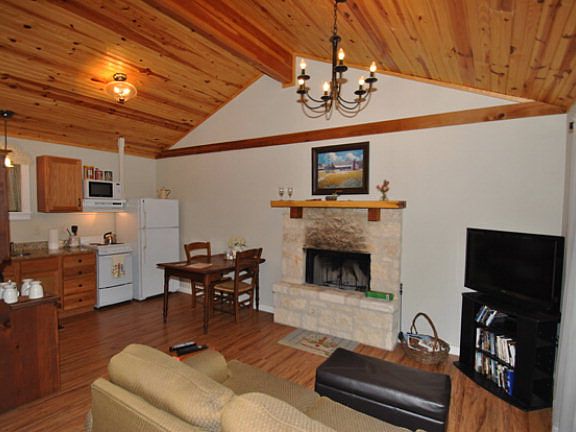 The Alamo Springs Country Cabins are 2 active B&B's, The Country Cabin and The Barn, on 5.293 ac. across from Alamo Springs Cafe and near the Old Tunnel Wildlife Area. Both feature 1 bedrooms, 1 baths, Whirlpool tub, shower, king size bed, rock fireplace, vaulted ceilings, fully equipped kitchens, wireless internet, full length cedar porch, tin roof, 20,000 gallon rainwater system. Each has private setting overlooking small valley with beautiful trees including live oak, post oak, walnut and cedars. Most furnishings will convey. There is room and capacity to add 4 more units or RV hookups.