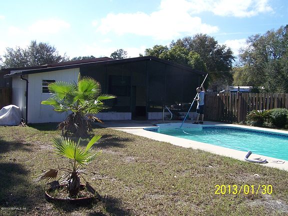 Great 2nd home! 2BR/2BA situated on a double lot within 15 min. driving distance to the beautiful St. Johns River. Features a nice in-ground pool w/privacy fenced back yard & spacious screened room overlooking the pool. Also has screened front & back porches, plenty of space to relax outside & enjoy the pool & Florida sunshine. Interior is well maintained & features a breakfast bar in kitchen, walk-in closets, & a beautiful master bath w/garden tub, separate shower & tile floor. All this for a great price. All offers will be considered.