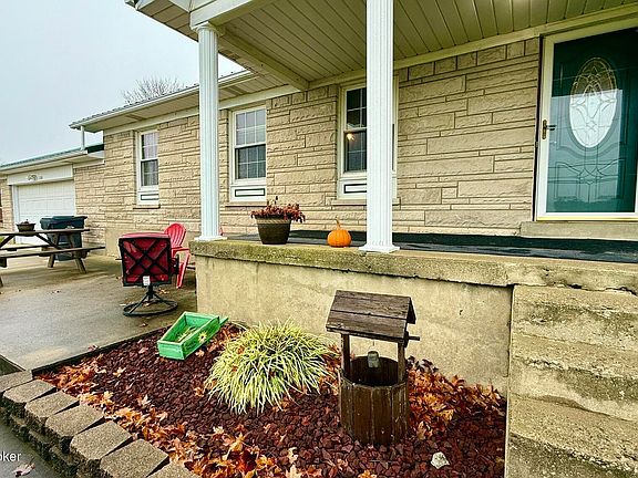 Nice, well maintained Bedford Stone house with attached pull through garage and full size unfinished basement overlooking Allens Pay Lake! So much to love about this home starting with this highly sought after location. The smaller lot backs up to open fields leaving you the elbow space you appreciate without all the maintenance effort required. Concrete driveway, concrete walkways and covered concrete porch complete with porch swing give you the perfect spot to enjoy looking over the stocked lake. The pull through garage extends the concrete driveway for additional parking in the rear creating several functionality options and not to mention air flow for a cool breeze! Inside; the spacious oversized family room featuring the gas fireplace will be the gathering spot for friends and family The kitchen features an abundance of cabinetry, countertop seating and a dining area with access to the inviting back deck and graveled firepit! Full size unfinished basement leaves room to grow!