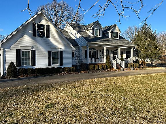 Concrete front porch, real brick veneer concrete circle driveway with glass basketball hoop.