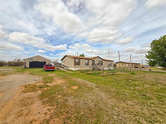 Opportunity awaits on this spacious 4.86 acre MOL property! The main home was built in 1993 and features 3 bedrooms, 2 full baths and approx. 1,344 sq ft. New hot water heater installed in 2023, new well pump in 2021. Great space and open floor plan creating an inviting space between the kitchen, dining and living room. Property features a storm shelter, detached 2 car garage with additional storage buildings, fenced areas and more! Don't miss the opportunity to make this home!