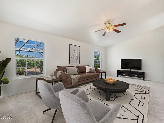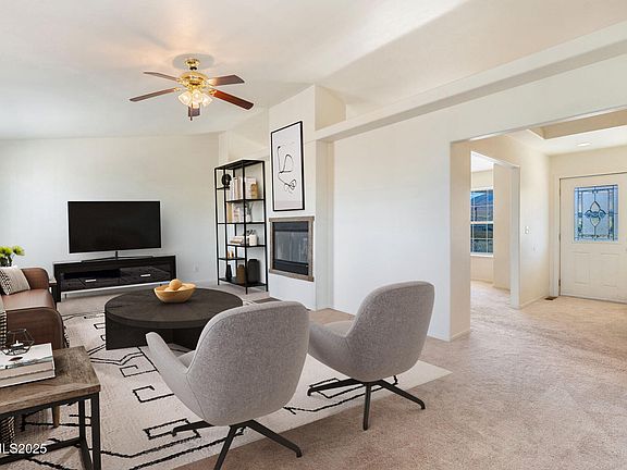 Motivated sellers - bring your offers! Welcome to 110 Arabian Way in Rancho Haven—where wide-open views meet thoughtful updates. Newly replaced items include the roof, well pump, water heater, furnace, carpet, paint, and garage doors, giving you move-in peace of mind. Set on a fully fenced property with an additional fenced area near the house (ideal for a pet), the home balances rural privacy with proximity to Reno's conveniences. A gravel driveway with a security gate offers easy access and extra security. Inside, you'll love the bright, functional layout featuring vaulted ceilings and a double-sided fireplace that warms the main living areas. The private living room, three comfortable bedrooms, a kitchen with ample storage, and an oversized laundry room that doubles as a mud room keep daily life organized. Take in stunning valley and mountain vistas—Northern Nevada living at its best!