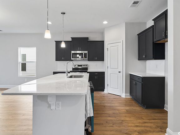 - Features: Kitchen Exhaust Fan, Kitchen Island, Pantry, Stainless Steel Appliances, Solid Surface Counters