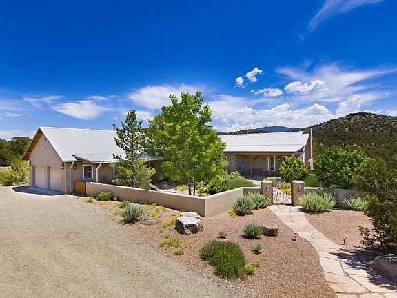 Built in 2007 with inspiring Santa Fe mountain views, this SINGLE LEVEL 2750 sq. ft 3 bed/2.5 bath home with a separate 800 sq. ft. 1 bed/1 bath guesthouse rests on 5 rolling acres and is 10 minutes to downtown Santa Fe. The siting of this property provides views of the magical hills of Santa Fe from the deep, NE-facing portal and views of the Sandia/Ortiz from the beautifully landscaped front portal/courtyard. With the high-pitched roof and northern NM design, the expansive feeling of the open floorplan harmonizes the indoors with the great outdoors. Clean beauty and balance are found at 112 A Arroyo Hondo Rd....A true Arroyo Hondo gem.