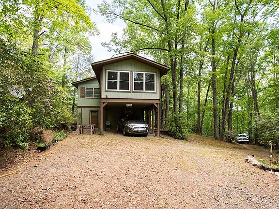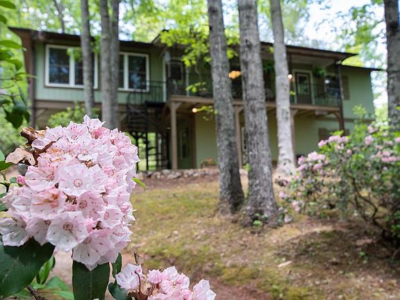 Sweet Franklin NC mountain cabin just moments from the center of town. This 2 bedroom, 2 bath home is tucked away in a quiet setting surrounded by mature trees, and perennials. It has a nice winter view and an easy access LEVEL drive and yard! Plenty of parking for you and your guests. The home has 2 spacious decks, 1 upper & 1 lower. There is a lower level that has a good size family room, a mini-kitchen, full bath, laundry facility and a large workshop. This lower level is accessible from both inside and outside of the home. The main level has a stunning custom Sun Room with windows all around, heated. The main level has 2 bedrooms and 1 bath, a real cute kitchen with two breakfast bars and electric appliances.Lower level heat is electric, upper level is a Mini-Split and baseboard.