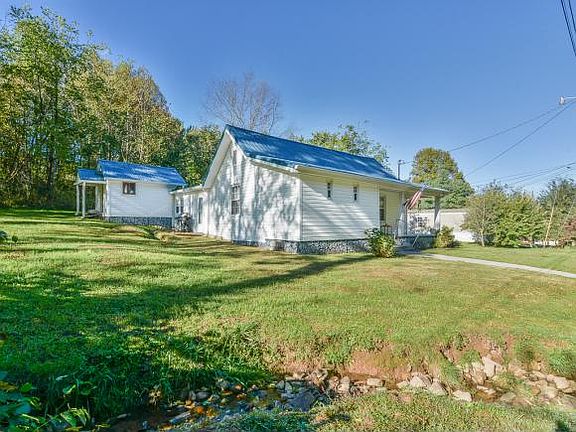 PRICED TO SELL ! BACK ON THE MARKET-Cute Older Cottage style home sits on just over an acre of land - country style - room for a garden. Small creek runs at the front. Newer metal roof and Windows. Enter the home into large living room with hardwood floors and propane gas fireplace, Dining room with wood burning stove. Large eat in kitchen with plenty of Oak cabinets, laminate counters, under cabinet lighting and tile backsplash. Laundry room off the kitchen. There is an attached storage room to laundry room that access is outside.Large Master bedroom with huge walk in closet and another closet. 2 more nice size bedrooms. Full bath features tub shower and tile flooring. This is a nice country place on a dead end street , mostly level yard , just over an acre with wooded back - room for a garden to the side or in the back if cleared a bit. Also included is almost new wood storage building with loft. Come see this one today. Home in good condition but at this PRICE- seller says Sold "AS IS" Laundry room floor is concrete with vinyl except for left corner which is plywood with vinyl- old steps under plywood. Roof leak in laundry room corner HAS BEEN REPAIRED by Roofing contractor. All information herein deemed reliable but subject to Buyer verification.