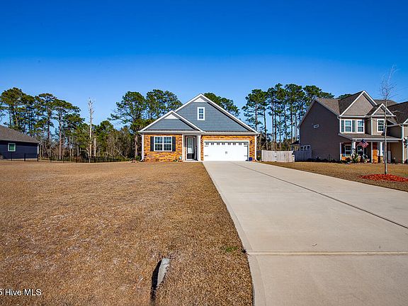 EASY TO SHOW! This charming home at 110 Ballantine Grove Lane in Newport, NC. A spacious 4-bed, 2-bath property features a modern kitchen, with solid surface counters, stainless steel appliances and huge Island.. Open floorplan. Home has custom paint, throughout. Large laundry room with washer and dryer. Epoxy floor in large 2 car garage, fenced backyard and covered porch.
