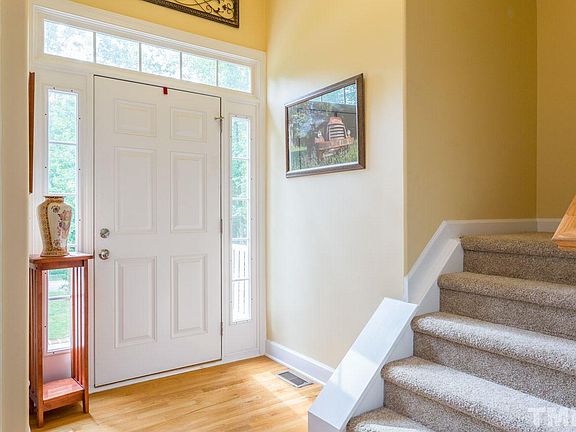 This energy efficient home has entry w/hardwoods, eat in Kitchen w/bar countertops, and 42" Maple cabinets. Separate DR w/onsite hardwoods, chair railing, and crown molding. FR w/cozy gas log fireplace. Utility Room w/cabinets. Pantry. Crown molding and double walk in closet in Master. Master Bath w/dual vanity, tile floors, soaking tub and walk in shower. Loft w/skylights 2nd and 3rd Bedrooms w/unfinished attic space. Screened porch. Huge deck. Private, wooded fenced yard. Sealed crawlspace.