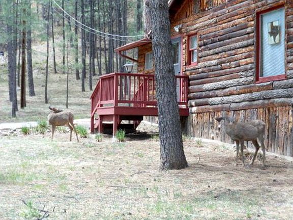 It doesn't get much better than this! This charming 3bd/3ba cabin sits on almost 1 acre right in town! Enjoy the tall pines & views of the golf course from the huge covered front deck. Rustic siding, hardwood floors, 2 fireplaces and warm knotty pine add to the comfort and appeal of this wonderful home. Ready to enjoy! Circular drive in front provides plenty of parking. Better hurry!