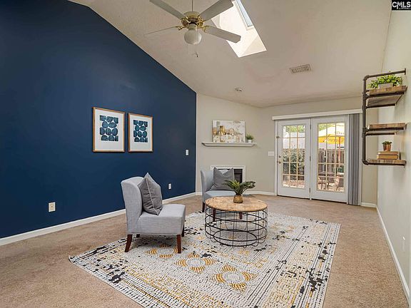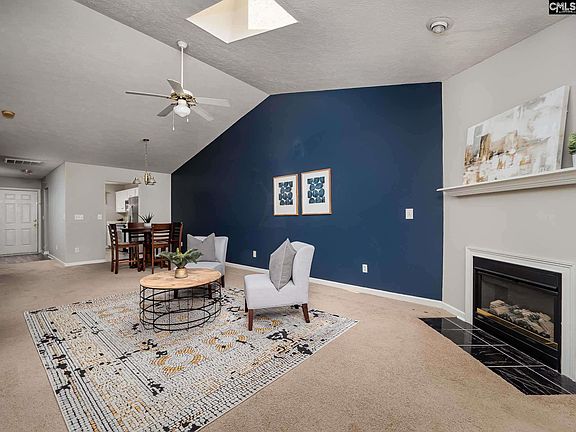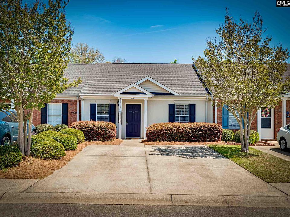 Charming patio home in Waverly Place of Lexington. 2 bedrooms, 2 baths in over 1000sf. Open floor plan throughout. The Great Room offers cathedral ceilings, a cozy fireplace, and abundant sunlight. Bright Eat-in kitchen with plenty of counter space and beautiful white cabinetry. Large master bedroom with walk-in closet and private bath. The private patio overlooks gated courtyard with access to the sidewalk. Grass free landscaping in the backyard and the front yard maintenance is included with the low HOA fee. Low maintenance living! Super convenient to shopping and restaurants. Zoned for Lexington District One Schools!