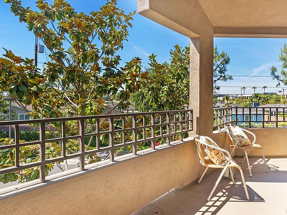 Beautiful end unit in the gated community of Baycrest Court near Jamboree & the 73. This home's private corner location is just a short walk to the Back Bay. Vaulted ceilings and large balconies off the living room & 2nd bedroom give the home a spacious feel & an abundance of natural light. Master has dual pane windows & a dressing area with sizable mirrored closets. The second bedroom has a full bath across the hall. Open floor plan includes a large living room with cozy fireplace & a custom built-in bookcase adjacent to a separate dining area. Kitchen has an attached laundry room. Barstools can be added to the counter to create a second eating area. The living area is all on one level, accessed by a staircase next to the attached garage. A second garage with ample storage is detached, in close proximity to the unit. Guest parking is right outside the front door, making this a coveted location. Home's interior was recently painted. Newer plantation shutters are throughout. Central heating and air. Proactive HOA has made recent renovations such as new roofs, new exterior paint, newly slurried streets, a newly designed gated entrance, new landscaping in the common areas, and a renovated pool & spa. Baycrest's amenities include a recreation area with a private pool & spa. Newport Mesa Schools. Enjoy the Newport Beach lifestyle with this convenient location near the beaches, Back Bay, freeways, the Orange County Airport, Fashion Island, South Coast Plaza & fabulous dining.