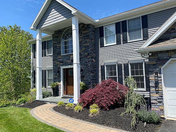 Spacious traditional home with 4572 total finished SqFt. witha 2-story entry and beautiful staircase. First floor offers formal living & dining rooms & an inviting great room with fireplace and skylights. Lovely eat-in kitchen has stainless steel appliances and wet bar. First floor bedroom includes private full bath. Upstairs master suite includes walk-in closet, full bath & sitting room. Three more bedrooms, hall bath, and loft area overlooking the great room complete the upstairs. Finished walk-out lower level has full bath and pellet stove. Large rear deck boasts a fabulous view and covers the patio below. First floor laundry, three car garage and more.
