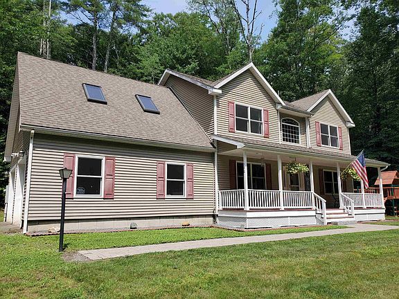 Desirable Dummerston location. A ten-minute drive to Brattleboro. Wooded, private 3.2 acre parcel, with easy access to Route 30. Built by the current owners with a lot of care and thought. Tons of natural light. Solar panels on the roof for hot water. A long, covered south-facing front porch. Easy to care for vinyl siding. As one enters the front door, the large living room is on the left. There is beautiful 2-1/4" oak flooring everywhere, except the kitchen and bathrooms where there is tasteful ceramic tile. The Bonus room upstairs has newer wall-to-wall carpet and a huge walk-in closet. In the spacious open kitchen, you will find a bank of maple cupboards and cabinets and plenty of storage. The five-burner Fisher & Paykel stove is efficient and handsome. There's a space on the east side of the room for a breakfast table. A formal dining room is right off the kitchen as well. Completing the first floor is a half bath, and laundry/mud room that connects to the garage. Upstairs one finds three good-sized bedrooms, including a very generous primary with a four-piece pleasing en-suite. Off the main bedroom, above the garage is a large bonus room, with a mini-split and two auto-open skylights. The open, bone dry basement space is currently being used for a home business. The attached 2-car finished and insulated garage has 10-foot ceilings and access to both the main level and the basement. 30 min. Mt Snow. 2.5 hr. Boston.
