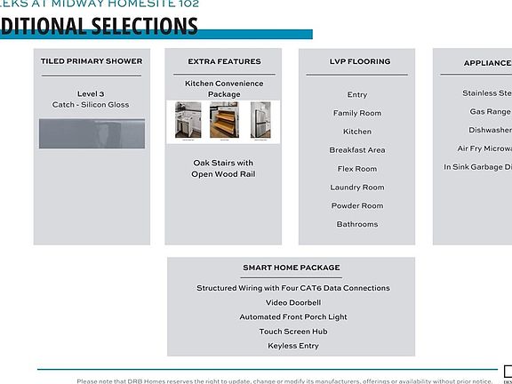 Entering The Cameron from your 2 car garage or front porch, you have your amazing 2 story foyer with a flex room adjacent to the entry that could be used as a home office or additional living space. The entry way continues into your open kitchen and living area with high ceilings and large windows for lots of natural light. The open kitchen features beautiful white cabinetry, light Quartz countertops, tiled backsplash, center island for additional prep space and seating and stainless steel gas appliances.The breakfast area leads out to the covered back porch overlooking your backyard. The walk in laundry room off of the garage completes the main level. Up the Oak staircase is the spacious Primary Suite with double vanities, generous walk in closet and tiled shower with seat. Three more bedrooms and a full bath complete the upstairs. All our homes feature our Smart Home Technology Package including a video doorbell, keyless entry and touch screen hub. Additionally, our homes are built for efficiency and comfort helping to reduce your energy costs. Our dedicated local warranty team is here for your needs after closing as well.