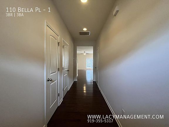 This 1668 square foot townhome home has 3 bedrooms and 2.5 bathrooms. This home is located at 110 Bella Pl #1, Holly Springs, NC 27540.