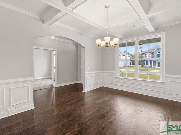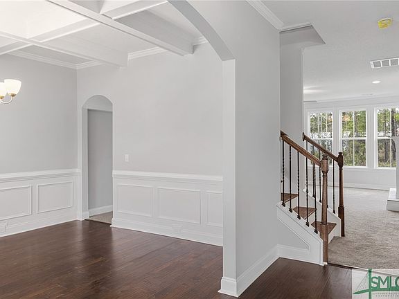 Welcome Home to New Haven at Belmont Glen! The 3450 plan by Faircloth Homes of Savannah has 5 bedrooms and 3 bathrooms. Formal dining room with coffered ceiling, and Formal Living room/study with French doors. The Great Room has an arched wall of window, breakfast room, and kitchen all open. Granite countertops, backsplash, island, and pantry in the kitchen. One bedroom and full bathroom complete the downstairs. Upstairs you have your oversized primary bedroom with an electric fireplace and sitting area. The primary bathroom has dual vanities, granite counter tops, separate shower, tub and walk in closet. Three bedrooms, another full bathroom, the laundry room and media room/bonus room complete the upstairs. Rear concrete patio covered with ceiling fan, 2-inch faux wood blinds, gutters, and irrigation system. Call for your private showing today!