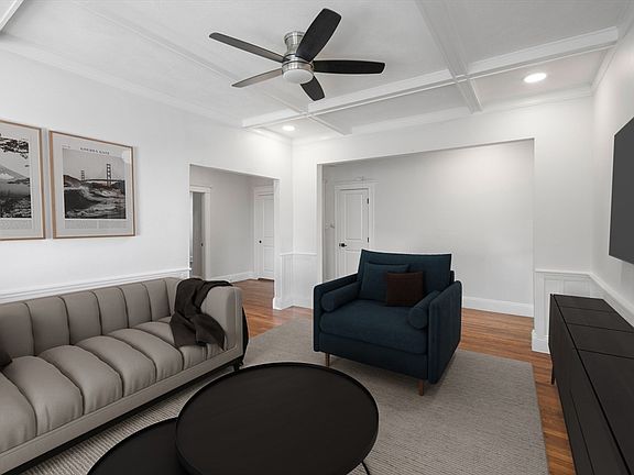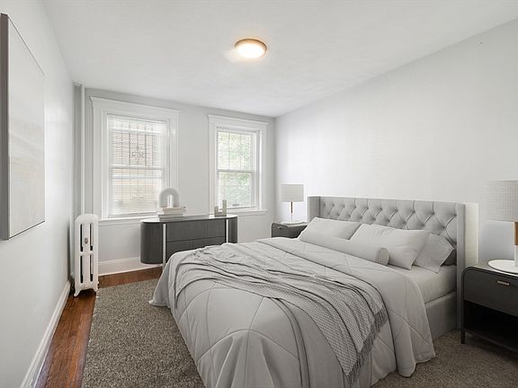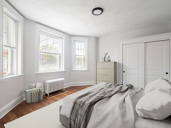 Welcome to this beautifully renovated 1,015 SF 2-bed/1 bath apt nestled atop historic Bellingham Hill. Thoughtfully updated for today's lifestyle, this first-floor home blends modern finishes with timeless architectural details like soaring coffered ceilings in the spacious living room perfect for a large sectional and entertaining. The brand-new eat-in kitchen is a true standout, featuring quartz countertops, stainless steel appliances, abundant cabinetry, and a convenient side-by-side washer/dryer. The sleek bathroom offers a large vanity and a glass-enclosed tub/shower combo. Tucked at the rear of the home, the king-sized primary bedroom ensures privacy, while the second bedroom comfortably fits a queen bed or functions beautifully as a home office. Additional highlights include generous in-unit and basement storage and a private rear deck ideal for morning coffee or evening relaxation. Just a 6 min walk to the Box District Silver Line stop, connecting you to Seaport in 20 mins.
