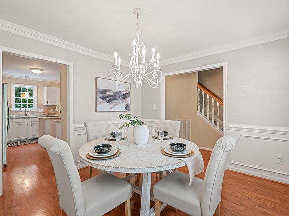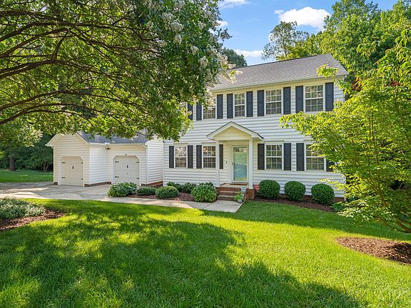 This classic Cary home is sits on a beautiful lot with trees lining the backyard. Located in one of the most welcoming neighborhoods, the main level has been freshly painted and features hardwood floors throughout. The bright kitchen includes granite countertops, a center island, and a breakfast nook with bay windows overlooking the private backyard. Formal dining with wainscoting, a spacious living room with a gas fireplace, and tons of natural light. Large laundry room with built-in cabinets, a utility sink, and plenty of space for folding and storage. Upstairs, you'll find all 3 bedrooms. The primary has vaulted ceilings and TWO walk-in closets! The primary bathroom has two sinks, a tiled walk-in shower, plus garden tub! Two additional bedrooms and a full bath complete the second floor. You'll LOVE the oversized 2 car garage! Wired for AT&T fiber plus full ADT security system. Large lot with an easement behind it, offers added privacy and space. Spend your summer days out on your back deck overlooking the lush landscaping, meeting neighbors at the pool, or a game of pickleball at the courts! Take a stroll through the neighborhood or walk over to Kids Together Park. Close to local grocery stores and restaurants, and only minutes from Cary Crossroads! Roof 2019, water heater 2020!