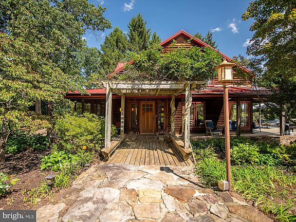 Once upon a time the owners began their dream home in 1982 by completely removing the original 1850 remnants that were on the property except for a beam-this continuous labor of love eventually became the uniquely beautiful Bella Mattina B&B for 11 years. It's been a private oasis that only family & guests have been privileged to enjoy until NOW! This special home has so many local artist's handiwork & craftsmanship throughout the property that it truly is a one of a kind! Cedar sided contemporary manor has 3 bedrooms, 2 baths on 9.52 UNRESTRICTED acres. Thoughtfully built with so many windows & tons of square footage in wraparound decking with built in seating to take in the sweeping mountain views toward Sleepy Creek Mountain and awesome spaces for entertaining. Tucked away screened porches for afternoon naps and outdoor dining or games. Features include hardwood floors made of cherry, walnut & oak, soapstone floor & fireplace in the living room, heated ceramic tile floors in the bathrooms, stone fireplace & veranda in owner's suite, Pella windows & new Vilux skylights, 2X6 walls, new propane furnace, stainless steel appliances & prep counters in kitchen along with artistry tile in the island, custom made doors and railings, outdoor shower. Metal roof is just 3 years young with new gutters, drain spouts and leaf guards. The detached guest cottage has newer roof & siding, EBB heat &a/c-comes in handy when extra family arrives-just add a bed again or make it your private studio/office-currently used for storage to clear out the house. Huge 35X30 barn with electric needs some roofing repair-can be used for storage or use your imagination-this spot with a deck was used for RV parking area for additional family & guests. (RV DOES NOT CONVEY AND IS OCCUPIED BY THE CARETAKER) Any gardening enthusiast will be excited about the organic soil and garden spaces around the property. And if you want water that tastes as good as any spring water you can buy all you need is to turn on the spigot! I encourage you to stroll around the property, take in the view, feel that quiet serenity upon entrance to the driveway-there's something magical about this place you need to experience! It definitely makes you want to stay awhile and for some lucky new owner you will never have to leave!! And all this privacy is within a few minutes to downtown restaurants, spas, shopping and activities.