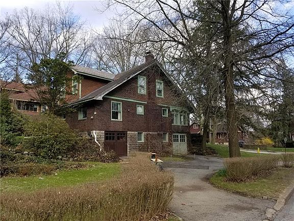 This stately craftsman style cape cod home is situated on a corner lot in in the Edgewood Acres section of Forest Hills. The main floor features a bedroom suite and a large bonus room/sunroom. The second floor has 4 spacious bedrooms. There are hardwood floors throughout. There is a second garage that was converted to be a part of the basement but can be easily enclosed to be a garage again. The exterior door is still there. The back section of the yard is level and secluded by hedges. In addition to the garage there is room for off-street parking in the circular driveway. This home is in need of some TLC and is waiting for a family or investor to bring it back to it to it's original condition.