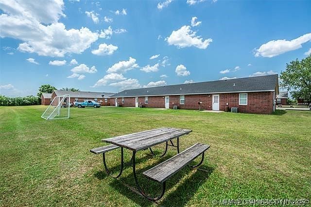 FOR RENT 110 Blackberry Dr Unit 3 Davis OK Monthly Rent: $1,000 Water Bill and Lawn Care Included Well maintained 2 bedroom 2 bathroom brick unit located in a peaceful and open complex in Davis. The living room is spacious with tile flooring neutral paint and an open layout that connects to the kitchen and dining area. The kitchen features abundant cabinet and counter space and comes fully equipped with a refrigerator stove dishwasher and microwave. Both bedrooms are generously sized with ceiling fans and large closets. The bathrooms include a full tub and shower combo with storage cabinets and updated fixtures. Washer and dryer are included in the unit for added convenience. Central heat and air throughout. Private covered front porch and dedicated parking space. Large shared yard with picnic area and open green space perfect for outdoor enjoyment. Located just minutes from downtown Davis Turner Falls and I 35.