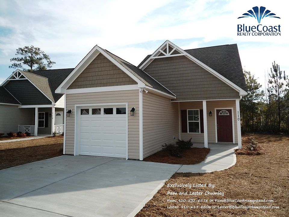 This new home is cute as a button and ready for occupancy! Great open floor plan, granite kitchen, subway tiled back splash and stainless appliances, wood floors, beautiful trey ceiling in the master bedroom and ample closet space. Covered front porch with coated concrete. This home is located on a cul-de-sac street. It is perfect for the first time home buyer or anyone looking to downsize! Low maintenance exterior and a small yard for easy living so you can spend more time at the beach! Great schools, close to golf courses, Kiwanis Park and minutes to the public boat ramp and Topsail Island!