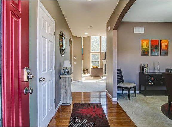 Stunning 1.5 Story Features Wall of Windows in the 2 Story Great Room with Gas Fireplace offering marble surround and elegant Mantel. Well Equipped kitchen offers staggered Maple cabinetry with crown molding, Center Island with Solid Surface counters, Large walk-in pantry and GE Stainless Steel appliances. Wood flooring in the Entry Foyer, kitchen, breakfast room and powder room. Main floor laundry room with cabinetry and plus desk space. Main Floor Master Suite has large bay window with views of the treed backyard plus a ceiling fan. Luxury Bath offers Tub and Separate Shower, Adult height double bowl vanity and Spacious Walk-in Master Closet offers natural light from the window. Upper level offers 3 additional Bedrooms-2 access the jack & jill bath and the other has a private bath. Expansive Loft space in upper level with recessed lighting & ceiling fan. Yard backs to trees and offers 17x12 patio off walkout lower level. Zoned HVAC! HMS Warranty included! Showings begin on 7/25/17
