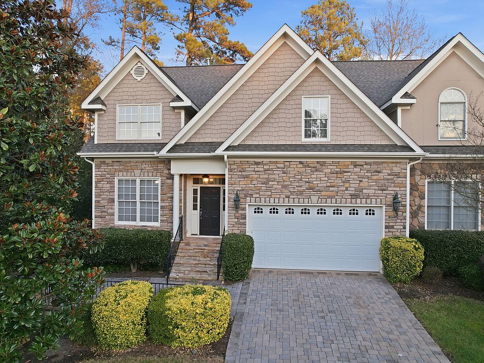 Welcome to 110 Bon Marche Lane, a home that immediately feels comfortable from the moment you walk in. The layout is open and inviting, with a bright family room centered around a gas fireplace and an easy flow into the kitchen. With plenty of counter space, stainless steel appliances, and ample storage, the kitchen is a natural gathering spot for cooking, conversation, and everyday routines. One of the highlights of this home is the first-floor primary suite, offering a quiet retreat with a walk-in closet, dual sinks, a soaking tub, and a separate shower. The main-level laundry room is just steps away—one of those small conveniences that make life run a little smoother. Upstairs, you'll find three additional bedrooms, a full bath, and a flex space that can easily adapt to whatever you need—an office, playroom, hobby space, or a cozy second living area. The home has recently been updated with a new roof in 2025, fresh paint, new carpet in the family room, updated lighting and outlet covers, a newer refrigerator, and newly installed wood stairs, giving the home a fresh, welcoming feel from the moment you enter. Outside, the corner lot offers a bit of extra breathing room, with mature landscaping that adds to the sense of privacy. The Maison En Mer neighborhood is known for its quiet, friendly atmosphere, complete with a walking trail, small pond, and gazebo that residents love. And with Target, Starbucks, restaurants, and daily conveniences just minutes away, the location truly combines calm living with everyday ease.