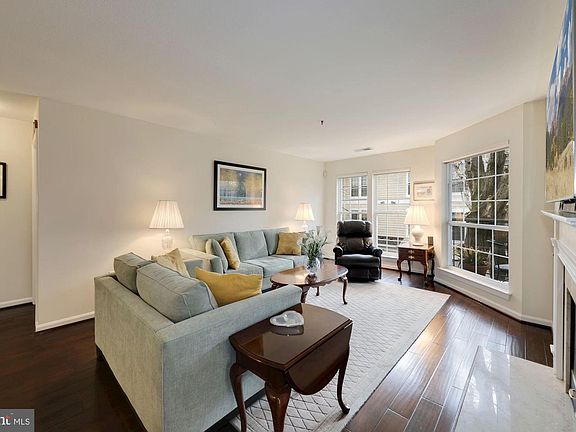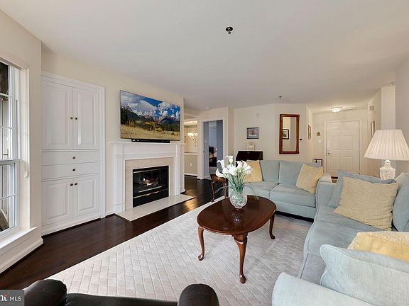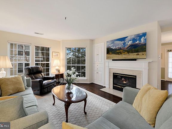 Beautiful 2 Bedroom 2 bath condo located in the heart of Kentlands! Sunny and bright, this condo features floor to ceiling windows for lots of natural light. Gorgeous hardwood floors recently installed in the living areas accentuate the cozy gas fireplace and built-in cabinetry. Separate formal dining room includes updated lighting and access to private patio through French doors. Kitchen features granite counters, gas cooking, ceramic tile flooring, updated lighting and ceiling fan. Enjoy your morning coffee on your peaceful second balcony off the kitchen, overlooking trees and an attractive courtyard. Two large owner's bedrooms with walk-in or double closets, both with newer carpeting and ensuite baths. Laundry in unit with full sized washer and dryer. Plenty of parking. Storage area. New HVAC and Tankless Hot Water Heater 2019! Condo fee includes water. Fabulous location in the community is just steps to shops & restaurants. Kentlands Community amenities include pools, tennis, pickleball, jog/walking paths, fitness room, playgrounds and more!