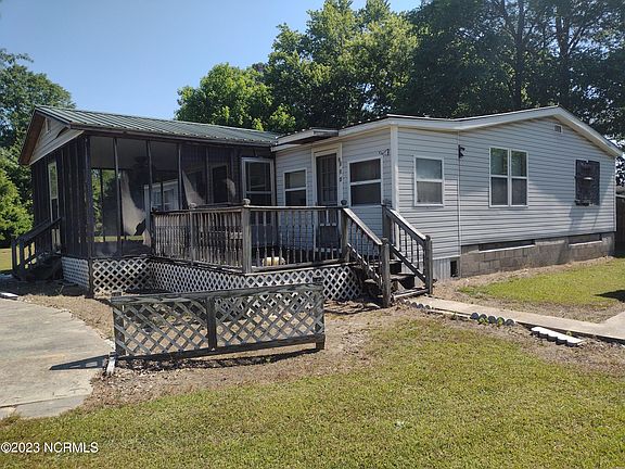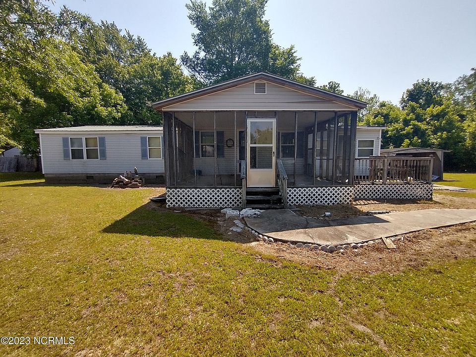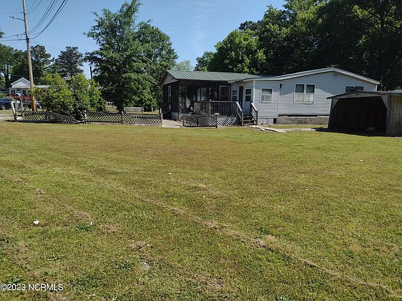 Open split floor plan with Owners Suite on one side and 2 bedrooms and 1 bath on the other, Owners' Suite has a very large bathroom with a walk-in closet and separate shower and tub. 12'x12' room addition off the Dining Room/Kitchen, Laundry/Mud Room with outside door. 6'x30' closed front porch split into two rooms, 14'x18' screened front deck and 10'x12' front deck. Roof replaced several years ago but no repairs were made inside. 3 sided shed/car port. The conditions of the H/A and other systems are unknown. It has not been lived in for many years and needs complete updating. Some floor sections have been replaced or covered over with boarding. This property with lots of possibilities is located close to downtown Historic Hertford and close to the Library, Shopping, Restaurants, and several town waterfront parks and fishing areas.