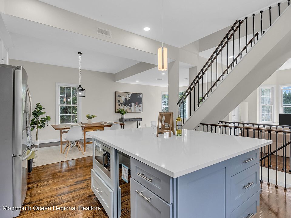Welcome to desirable Red Bank! Fall in love with this beautifully renovated single family colonial home which features 3 bedrooms and 3 bath with partial basement! You will love the open layout of the first floor featuring a formal dining room leading to a spacious & bright living room. Updated gourmet kitchen with shaker cabinets, wine fridge, granite countertops, ceiling mounted range hood, center island & high-end SS appliances. The first level also offers a bedroom, full bath & backyard access. Second floor features 2 bedrooms & gorgeous full bath. Partial basement has plenty of space for storage. Home features a backyard with patio & plenty of room to add a pool - great for entertaining! 2 year Home Buyer Warranty to buyer! Close to Red Bank train station, major highways, shopping, restaurants, walking distance to the famous Red Bank downtown & minutes to the most beautiful Jersey shore beaches! Come take a look, this beauty won't last!