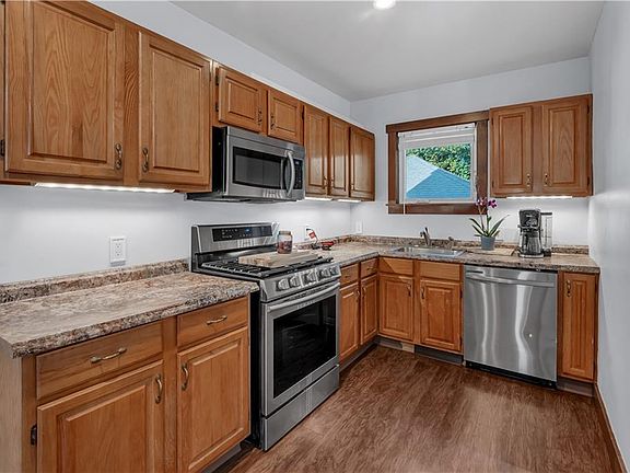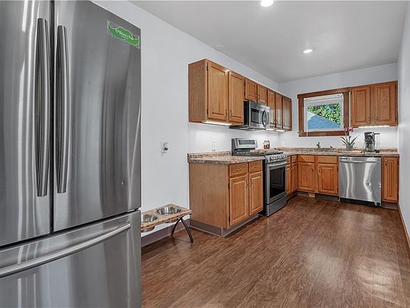 This exceptional three-family home blends modern updates with classic charm, offering nearly 1,200 square feet per unit. Each apartment features two spacious bedrooms, a full bath, and a large family room, providing comfortable and functional living. The kitchens and bathrooms have been tastefully upgraded, while gleaming hardwood floors and two cozy fireplaces add warmth and character throughout. Outside, the beautifully maintained vinyl-sided exterior is complemented by a fenced-in backyard, with a paver patio ideal for entertaining, and a detached storage building. Recent improvements include a five-year-old roof, updated electrical and light fixtures, newer hot water heaters, and fresh interior paint. All three units have separate utilities. Ample off-street parking adds everyday convenience, and the landscaped grounds reflect true pride of ownership. Being sold subject to the seller securing suitable housing.