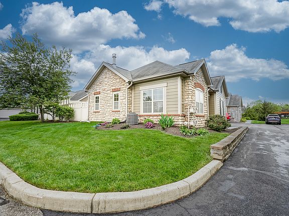 IMPECCABLE TASTE AND SUPERBLY DETAILED! Gorgeous low-maintenance RANCH condo home with open cathedral floor plan! You will notice the great care the seller has taken when you first walk into this condo. This well-constructed Epcon built condo has 2 spacious bedrooms, a functional separate office area, lots of storage, FINISHED 2-car garage, and very nice cosmetic details. The kitchen has center island with breakfast bar, and is open to dining room and great room. The great room gets an abundance of sunshine and is equipped with cozy gas fireplace. Check out the privatized and fully enclosed patio which is off the great room and works superbly for bar-b-ques and get-togethers. There is even a separate gas line to the patio for that perfect firepit! Enjoy sitting on the covered front porch and walking in this very quiet community with a private clubhouse and pool for the community residents. You will love it. Set up a showing today. Welcome home!