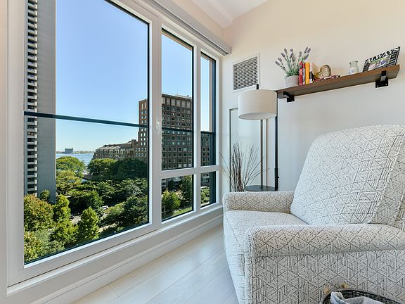 Experience stunning Boston Harbor and Greenway views from this ninth-floor condominium residence at The Boulevard. Enjoy unparalleled amenities, including a state-of-the-art fitness center and automated underground parking with one space included. This open-concept residence features floor-to-ceiling windows that flood the home with natural light, a spacious gourmet kitchen with quartz island, Wolf/Sub-Zero appliances, and European cabinetry. The primary suite boasts water views, a luxurious en-suite bath with a glass shower, dual vanity, heated floors, and a walk-in closet. A versatile guest room with a Murphy bed and en-suite bath adds flexibility. Located near the Seaport, North End, Financial District, and transit options, including the water taxi and T. Renter responsible for electric and cable/internet. First, Security and Broker's Fee due at signing. Second bedroom is interior; has door, closet, but no window. Murphy bed is built-in. SUV garage parking space.