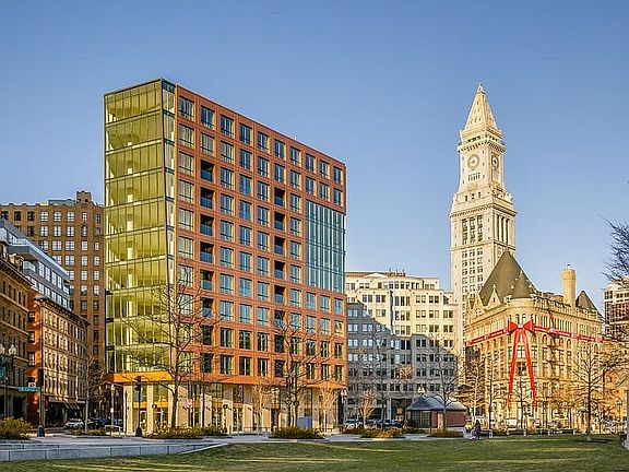 Welcome to The Boulevard at 110 Broad Street! This 36 unit boutique residence with concierge and harbor views is set along the Rose Kennedy Greenway. Imagine the opportunity to enjoy downtown living nearby parks and public walkways. This two bedroom condominium offers a unique open floor plan with 1300 sf!. Sleek modern kitchen with fabulous storage, gas cooking, and an entertainment size island. The living room boasts floor to ceiling walls of glass over looking The Greenway, an you will love the open and flexible floor plan. The intereior second bedroom can fit a queen bed and double as a den or office. Second full bathroom has laundry. Enjoy the fresh air on the outdoor balcony, or cozy up to the gas fireplace. Lovely master bedroom and bathroom with double vanity and oversized shower. The Boulevard offers concierge, fitness center, club room, pet spa and an automated parking system. Minutes to Seaport, North End, Faneuil Hall, many restaurants and shops as well as the MBTA.