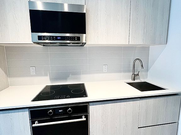 Large windows in bedroomOpen balconyPremium upgraded finishesSleek kitchenQuartz countertops