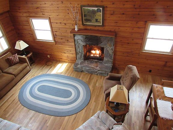Gorgeous 2 bedroom 2 bathrooms log home with a warm and inviting interior, with tons of natural light. Located in a quiet well-maintained neighborhood on great private lot. The home is spacious with vaulted ceilings, open floor plan, hardwood floors throughout, and a Gas log ROCK fireplace. This cabin has been very well maintained. Large porch/deck. Brand new energy efficient windows.