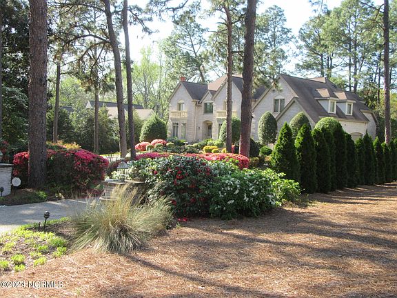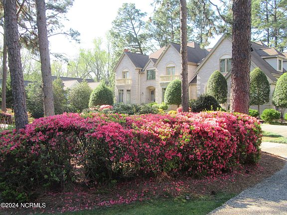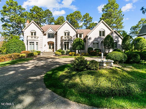 Incredible opportunity for a one owner French Country Style brick home with direct frontage on 4th hole of Word Famous US Open Pinehurst #2 Golf Course. Purchase now and enjoy the 2024 US Open directly from your back Yard! Immediate access to Pinehurst Country Club Signature Golf Charter Membership Courses 1-9. On one beautifully landscaped acre within prestigious Fairwoods on 7, a gated Community minutes from the Pinehurst Resort and Country Club and the Historic Village of Pinehurst. Custom designed by National renowned architect Scholz Design and lovingly constructed by award winning local builder Yates Hussey. The timeless architecture of this home is amazing. The main living floor exhibits a spiral self supporting staircase allowing a direct though the home view of the back yard and US Open Course. A soaring 20ft ceiling in the Family room with huge windows and three sets of Terrace doors overlook the stone baluster rear porch and inground jetted pool and spa tub! The huge open chef's kitchen has counter and breakfast table seating. Appliances include a 48 inch Dynasty gas stove with grille and griddle, Kitchenaide Double convection wall ovens, a 42 inch Kitchenaide Refigerator/Freezer, Bosch Dishwasher, wall microwave,. and warming drawer. A Large island with prep sink and dozens of custom cabinets offer abundant storage. The home is constructed with multi piece custom finished moldings and doors. The doors are solid Honduras mahogany. Five bedrooms, 5 full baths, and 2 1/2 baths provide your family and guests wonderful privacy.The master bath shower has his and hers wall heads, hand helds and body sprays. A center mounted rain head and a steam unit will delight the owners. The lower level has an additional 2118 SQ FT heated with sauna, theatre room, kitchenette and huge workshop. State of art security system. 16 zone irrigation/fertilization for extensive landscaping from well. .Most Furnishings negotiable. See Features sheet for more data