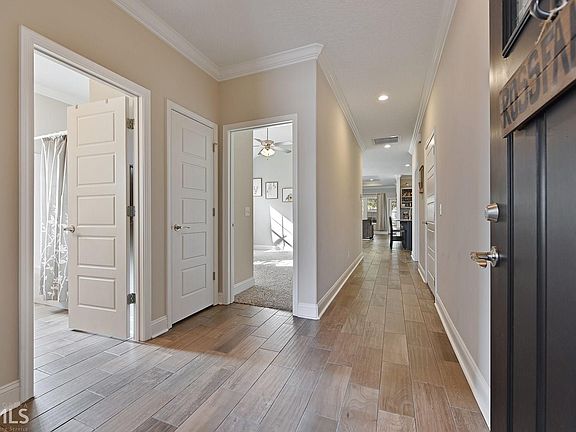 Beautiful 3 bedroom 2 bath home with 2 car garage and stacked stone and tabby exterior. Cozy main living areas have tile floors and crown molding. The great sized kitchen features an island, a walk in pantry, granite counter tops, subway tile back splash, and custom cabinets. There is a large master bedroom with a huge master bathroom, walk in shower, soaking tub, dual vanities, and very big walk in closet. The back porch area backs up to the park. The lawn care is included in the HOA fees, so no cutting grass for the lucky owner of this home. Seller has a new baby and is considerately leaving hand sanitizer available for the protection of all that tour her home. Please encourage all to use.