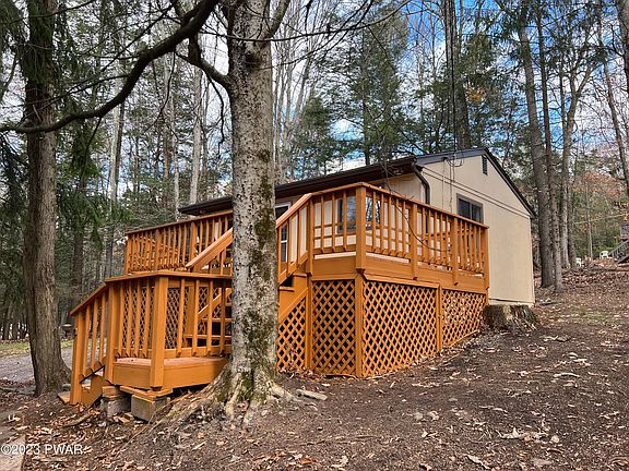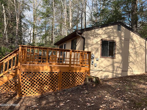 AFFORDABLE Lake living! Year round, well maintained cozy cabin. Includes 3 lots. One on each side of cabin for extra privacy. Very close to river & motor boating Lake Wallenpaupack. Open concept design., Spacious kitchen, combo living rm/dining rm. 2 bdrm, plus sleeping loft. Fully renovated bathroom. New flooring and new propane heat stove with flame view ambiance. Exterior of house and deck recently painted. Spacious deck with enclosed storage space below. Large detached storage shed. Boat slip available, plus public launch area close by on motor boating Lake Wallenpaupack. Beaches and personal watercraft launching on River and Lake. Outdoor swimming pool and small private canoeing/kayaking lake. Lots of year round activities nearby. Skiing,, State Game Lands and parks, 4 wheeling, and hiking trails, golfing and more. Close to shopping and restaurants. Low taxes. Create memorable times with family and friends! Commutable distance from NYC and major metro areas.,