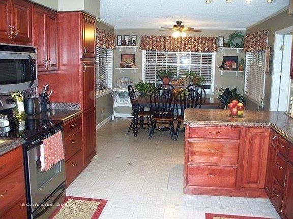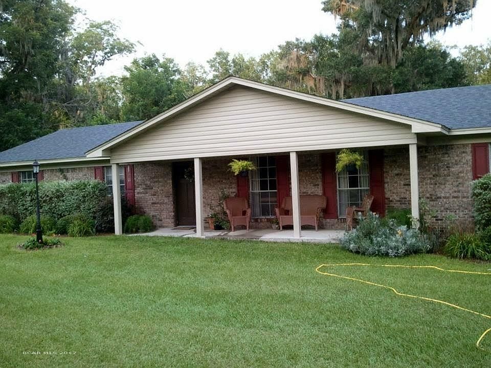 Spacious brick ranch situated on 2.3 acres inside East Brewton city limits. Large master bedroom and bathroom featuring large walk-in closet and dressing room. Dressing room could be used as nursery or extra bedroom. Master bath is spacious with separate tub and shower, double vanity, and walk-in linen closet. Kitchen has updated cabinets, counter tops, and flooring with a lovely breakfast nook surrounded by windows. Den features built in entertainment center with cabinetry and a wood burning fireplace. Newer laminate floors in den and living/dining area. Second master features full bath with walk-in closet. Hall bath is updated with newer fixtures. Large fenced back yard with 12x18 shed with covered storage on each side, plenty of room for everything. This is a family home with plenty of extras to offer. New central A/C unit installed approximately 8 months ago. Large front porch with room for rocking chairs. ADT security system installed. All measurements are approximate and should be verified by buyer or buyer's agent. Seller is licensed real estate agent.