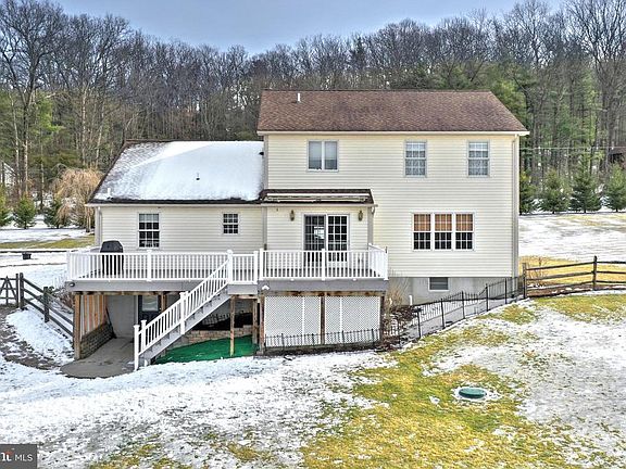 Rural Adams County on 5.94 acres with country views. Gettysburg School District. Spacious two-story 2,478 sq. ft. Colonial. 4 bedrooms, 3 baths with attached 2-car garage. Living and dining with hardwood floors, updated kitchen with stainless appliances, quartz countertops, duro-stone tile flooring, pantry and patio door to rear deck, family room with gas fireplace, laundry room, bedroom/office with wood floors, hall bath. Second level offers master suite with walk-in closet and master bath with granite counter. Two additional bedrooms and hall bath. Lower level with a walk to fenced rear yard. Detached 24X30 garage and a 24X40 pole building, both with heat and electric. Convenient location.