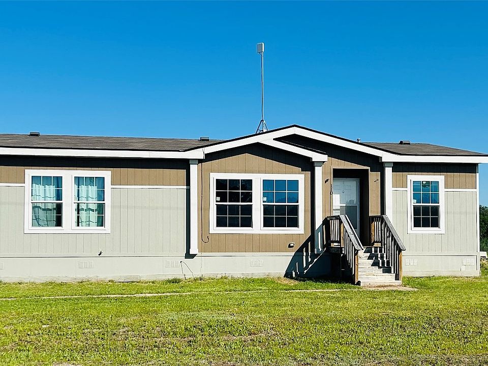 Step into this delightful 4-year-old manufactured home, nestled on a serene cul-de-sac and encompassing two expansive lots that together span almost a full acre of picturesque land. This charming home exudes a trendy allure, boasting a chic interior adorned with sleek barn doors in the kitchen, a stylish island, and charming decorative beams that add a touch of rustic elegance. Embrace the tranquility of a country setting while relishing the convenience of being in close proximity to a host of amenities, all without the constraints of an HOA. With 3 cozy bedrooms and 2 luxurious bathrooms, this home offers a perfect blend of modern comfort and rustic charm, creating a welcoming and inviting atmosphere that is sure to captivate hearts. Don't miss the opportunity to make this enchanting retreat your own. This listing also comes with listing number 20587485.
