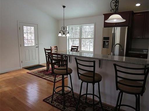 New Construction across from Stagecoach Lake. What a great location. Open floor plan with kitchen/breakfast bar offering granite counters. Great room with vaulted ceilings open to Kitchen/Dining area. Master bedroom suite with full bath. Hardwood floors thru-out. Great design with additional living space in walk out lower level consisting of a family room, workshop and utility room. 2X6 construction with energy star rating-stretch code built. Low heating costs with all this insulation. On demand high efficiency propane hot water system, Enjoy the front porch and watch the nature at the lake.