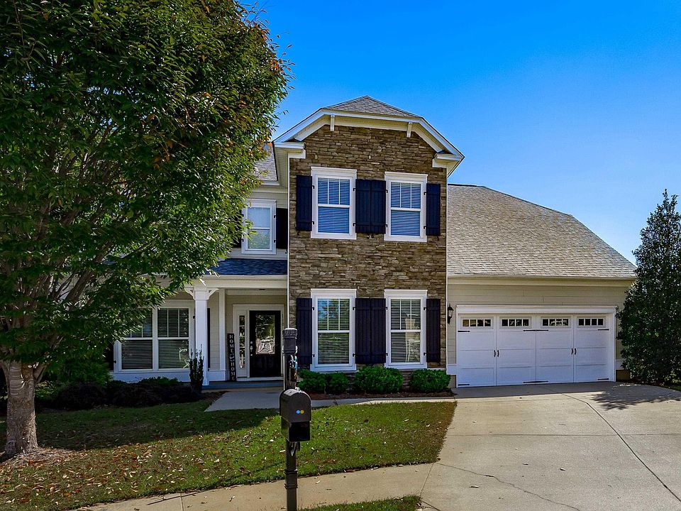 Prestine Sovereign Homes built home on quiet cul de sac. 5BR 3.5BA. Open floor plan with abundance of light! Owner suites on main and second level! Great room with vaulted ceiling and gas fireplace. Large windowed eat-in kitchen with stainless appliances, granite counter tops and glass subway tile backsplash in addition to several cabinets with softclose drawers, induction smooth cook top stove, breakfast bar and french door to screened porch & huge deck. Family/rec room on 2nd floor is 5th BR with closet & attic access for storage the length of the room. Spacious formal dining room with heavy molding, wainscoting, chair railing & wood flooring. Extensive engineered wood flooring on main level. Tons of closets &storage. Blinds throughout. Kitchen and great room drapes do not stay. Spacious backyard with privacy plantings of green giant Arborvitae. New roof 2022. New entire exterior paint, trim and shutters 2024. Termite bond. Fun family neighborhood with community clubhouse, pool, pocket parks, 15 acre lake with fishing pier, playground, nature parks, frisbee park & walkway to middle school! Boat storage available for a fee.