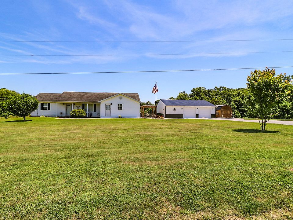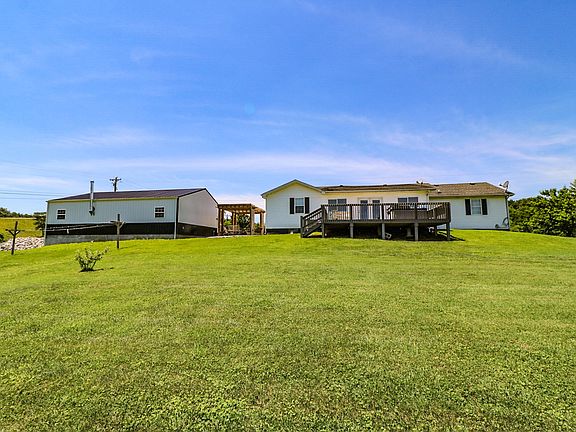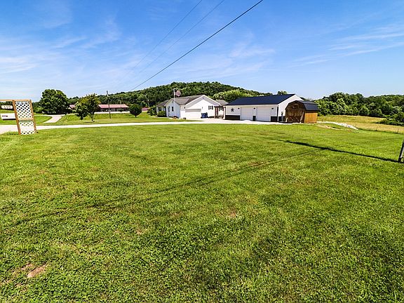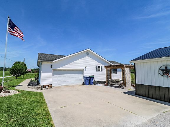 This open concept home for sale is located at 110 Cains Store Cemetery Road in Nancy Kentucky. Only minutes from The Cumberland Parkway and beautiful Lake Cumberland. Nestled in gorgeous Kentucky farmland you will find this spacious 3 bedroom 2 bath home that was built in 2000, along with a large 1200 sq ft detached garage and a 10x12 storage building. Upon entering the home you will find an open concept with the kitchen, dining area and living room all open to each other with vaulted ceilings. The master bedroom with ensuite bath are on one side of the home and the other 2 bedrooms and shared bath are on the other side of the home. Across the back of the home you will find a 10 x 24 sunroom that is heated and cooled that opens up to the back deck where you can sit for house in your hot tub enjoying the peaceful farm views. There is a really nice 30 x 40 detached garage that has poured concrete floors, and electric. The walls are insulated and the garage is even set up for a wood stove for those chilly Kentucky winter days while you are out there working on your special project. Between the home and garage is a nice sitting area with pergola and firepit. Plenty of room on these 2 acres for a few livestock or really large garden. Sellers are offering a 1 year home warranty at closing for the buyers as well !Located only 15 minutes from Lees Ford Marina in Nancy, Ky - 20 minutes from Somerset, Ky - 23 minutes from Russell Springs, Ky and 28 minutes from Liberty, Ky