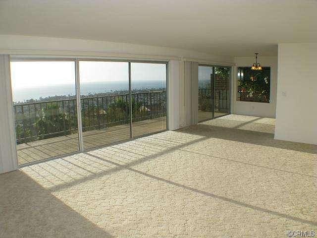 Absolutely stunning panoramic ocean views from this single level three bedroom, two bathroom condo. Full wall of sliding glass doors in the living room, dining room and one of the bedrooms offer unobstructed views of Dana Point Harbor, Catalina, San Clemente Island and Seal Rock. A deck spans the entire length of the unit offering a wonderful large outdoor space for relaxing and enjoying San Clemente's spectacular sunsets. Two of the bedrooms are larger, one with a full wall of mirrored closets and the other with a walk-in closet. The open floor plan with extra large living area allows for versatile seating arrangements. Close to downtown shops and restaurants. This is a rare single level condo with one of the best views in San Clemente. A must see!