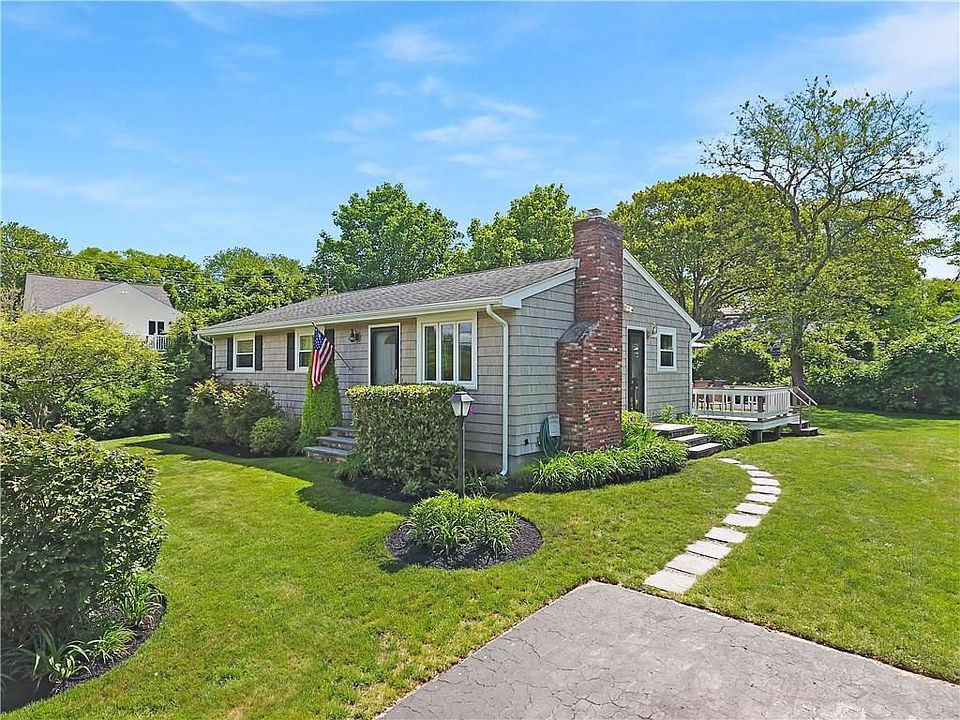 Nestled in popular beach area of Bonnet Shores- Walk, run or bike to the beach. Double lot with salt water pond views and gorgeous sunsets. Large lot with outside shower, big deck and shed for storage. Updated ranch style with three good size bedrooms, hardwood floors, recently updated kitchen. Newer roof and great vinyl shingle siding that looks new and better than wood shingles.