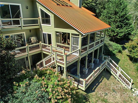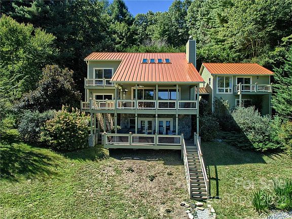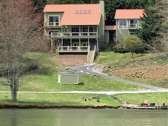 Come home to Lake Glenville! This spectacular property will wow you from the moment you enter. Beautiful views of the lake and the mountains from every level. The main level boasts a completely remodeled kitchen with gleaming stainless steel appliances, gas cooktop, beautiful granite, and custom cabinetry. The open concept living room/dining/kitchen leads to the most spectacular seat in the home--the covered front porch overlooking the lake. Enjoy all four seasons and soak in the views. Every bedroom is a Master bedroom with its own full bathroom. Three bedrooms and two additional bonus rooms. Private dock. New standing seam roof with lifetime guarantee, new HVAC units, new exterior paint, and new on-demand water heater in 2021. High-speed internet available. Garage has additional living space with kitchenette and beautiful views of the mountains and lake as well. This home is a successful established vacation rental. Appointment required.