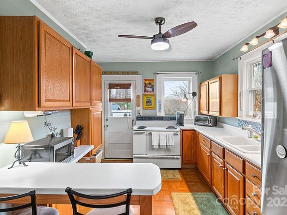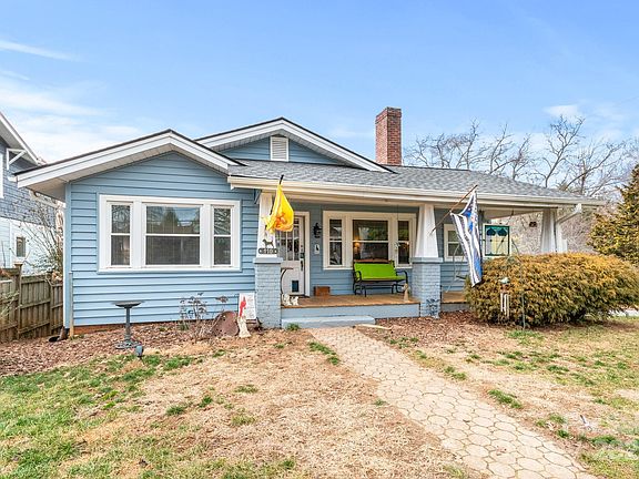 This charming Craftsman-style bungalow is perfectly positioned while also blending character & charm with modern updates. Enjoy an inviting covered porch with new decking & original design elements. Inside, find beautiful built-ins, charming brick accents, tongue & groove ceilings and oak floors (under carpet, per seller). This home offers dual living areas, plus a craft room or sunny office space. The bright kitchen has bar seating, ample storage & immediate access to the rear, 8 x 12 deck. A brand-new bathroom shower was added in 2024. The fenced front yard is great for pets & gardening. This exceptional corner location includes off-street parking, a detached 1-car garage with concrete floors, insulation & metal roof - potential use as an ADU. Solar panels and 3-year-old roof enhance energy efficiency, while new siding provides low-maintenance curb appeal. Located just steps from Malvern Hills Park and minutes from Haywood Rd, offering easy access to shops, dining, and more.